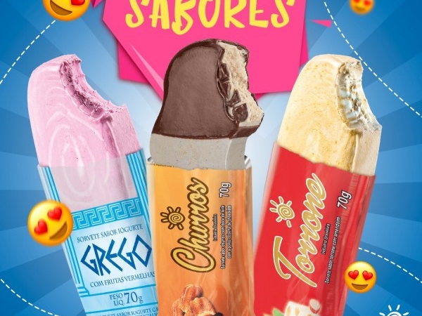 A SuperFrut, sempre pensando em agradar o paladar de todos os seus clientes, disponibiliza mais 3 novos sabores de picolés: Churros, Torrone e Iogurt Grego com frutas vermelhas.